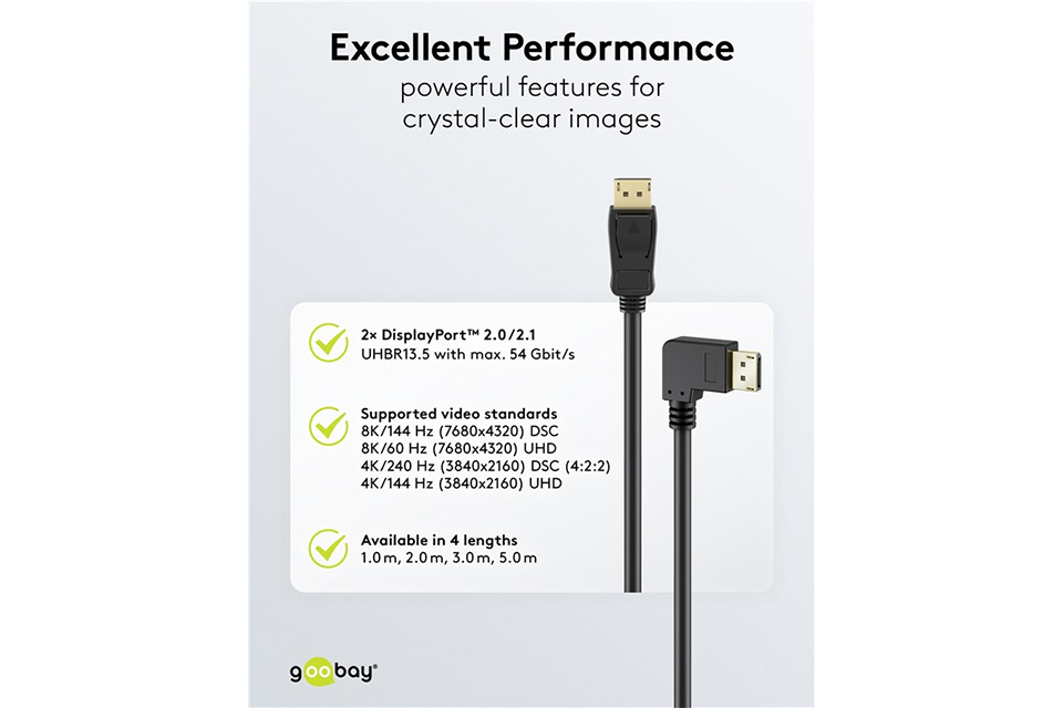 Angled DisplayPort 2.1 DP40 cable (4K@144 Hz / 8K@60 Hz) | 2,00 meter GB-77053: Angled DisplayPort 2.1 DP40 cable (4K@144 Hz / 8K@60 Hz) | 2,00 meter