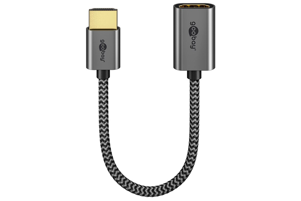 Highlights:• Supports 8K/60 Hz and 4K/120 Hz UHD resolution• Maximum transfer rate of 48 Gbit/s • Flexible and bendable premium design in Sharkskin Grey • Slim metal connectors with gold-plated contacts • Braided textile cable, gentle on surfaces • Compatible with ARC, eARC, HDR and 3D content Flexible HDMI Extension for Hard-to-Reach Connections:This flexible HDMI adapter is the perfect solution when connections behind your TV or other devices are difficult to access. With a length of just 0.1 meters, it provides a practical short extension that ensures reliable connectivity without compromising on quality. The smart braided textile finish protects both the cable itself and any surfaces it touches, while the elegant Sharkskin Grey design blends seamlessly into modern electronic setups.Perfect Picture and Sound Experience:The adapter supports ultra-crisp UHD resolutions up to 8K at 60 Hz and 4K at 120 Hz, making it ideal for gaming, streaming, and movies in the highest quality. With a transfer rate of up to 48 Gbit/s, it is ready for demanding features such as HDR, 3D content, and both ARC and eARC for outstanding audio performance. Gold-plated connectors ensure durability and stable signal transmission without interference.Specifications:• Connection 1: HDMI male (Type A)• Connection 2: HDMI female (Type A) • Contact material: Gold-plated • Housing material: Aluminium • Cable type: Round textile cable • Cable length: 0.1 m • Max. resolution: 8K/60 Hz (7680x4320) • Supported video formats: 4K/120 Hz, 4K/60 Hz, 10K/30 Hz, 4K/30 Hz • Supported standards: HDR, HDMI Ethernet Channel (HEC), 3D, HDCP 2.2, CEC • Supported audio standards: ARC, eARC • Max. transfer rate: 48 Gbit/s