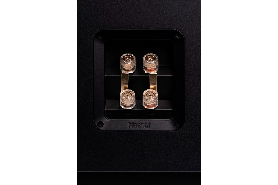 The cabinet is made of sturdy MDF with an elegant satin front and scratch-resistant vinyl sides. Magnat’s FE-Dynamics drivers use an advanced 3-layer ceramic–aluminium–ceramic sandwich diaphragm, ensuring high rigidity and minimal distortion. Dual Airflex ports reduce port noise and enhance bass performance. The speaker stands firmly on height-adjustable metal spikes with interchangeable feet for optimal acoustic coupling. The crossovers are acoustically optimized with a 24 dB slope and premium-grade components to ensure a natural and accurate frequency separation.
