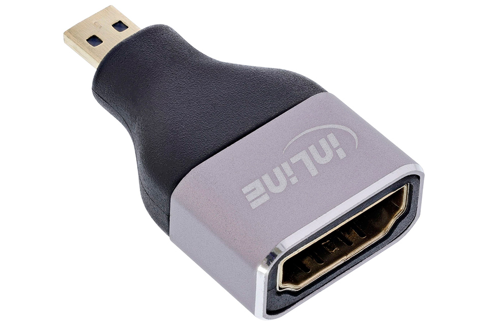 Highlights:• HDMI A female to Micro HDMI D male adapter• Supports resolutions up to 8K UHD • Gold-plated contacts ensure stable digital signal transfer • Compact and durable aluminum construction • Ideal for AV systems, displays, digital signage and professional installations Perfect connection between HDMI and Micro HDMI:The InLine® HDMI adapter makes it easy to connect a standard HDMI A cable to a device with a Micro HDMI D port. Its compact size and high-quality build make it ideal for home theaters, conference rooms, professional AV setups, and digital advertising solutions. The adapter supports resolutions up to 8K UHD, delivering crystal-clear and future-proof image and sound quality for both professional and private users.Durable construction and optimal signal transmission:Built from robust aluminum, this adapter protects against electromagnetic interference and extends its lifespan. The gold-plated contacts guarantee a stable and clean digital connection free from signal loss and interference. Thanks to its compact form factor, the adapter can be used even in tight spaces without compromising performance. An ideal solution for everything from laptops and cameras to projectors and professional displays.Specifications:• Connection: HDMI A female to Micro HDMI D male• Supported resolution: Up to 8K UHD • Contact material: Gold-plated • Housing material: Aluminum • Signal type: Audio/Video • Length: 3.5 cm • Width: 2.0 cm • Weight: 0.010 kg • Packaging: InLine® bag 20106A • Brand: InLine® Product reviews and links