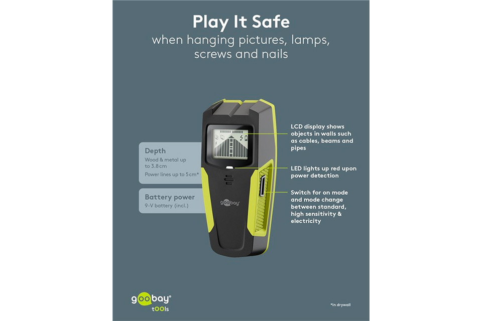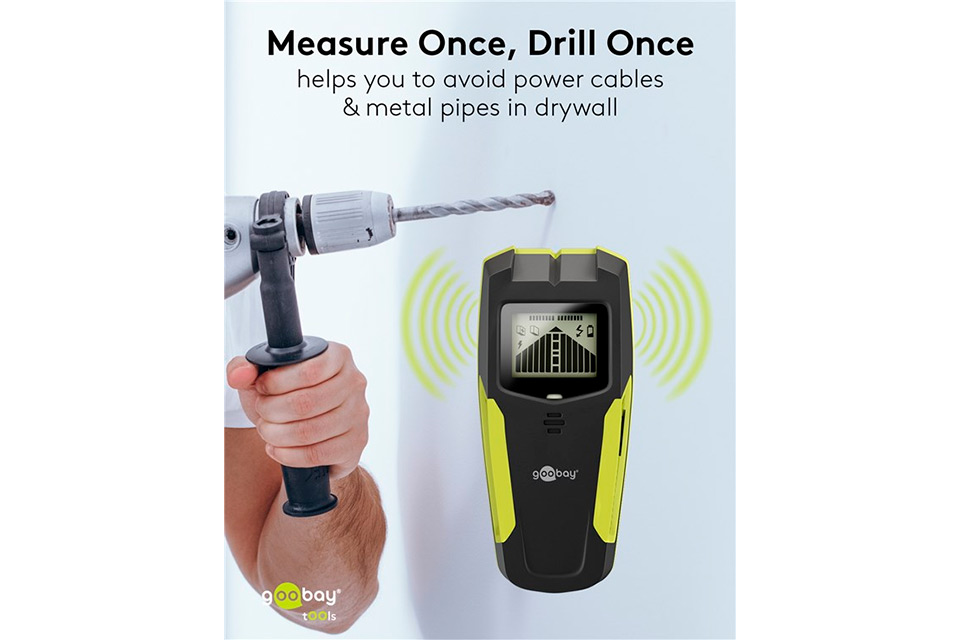 This versatile stud and wire detector makes DIY projects safer and easier. It reliably detects wooden beams, metal pipes, and live wires hidden behind walls, ceilings, and floors. With three detection modes – standard, high sensitivity, and electric current – you can easily adapt the scanning process to the material, avoiding unwanted surprises. Perfect for hanging pictures, installing lights, or mounting shelves with confidence and precision.