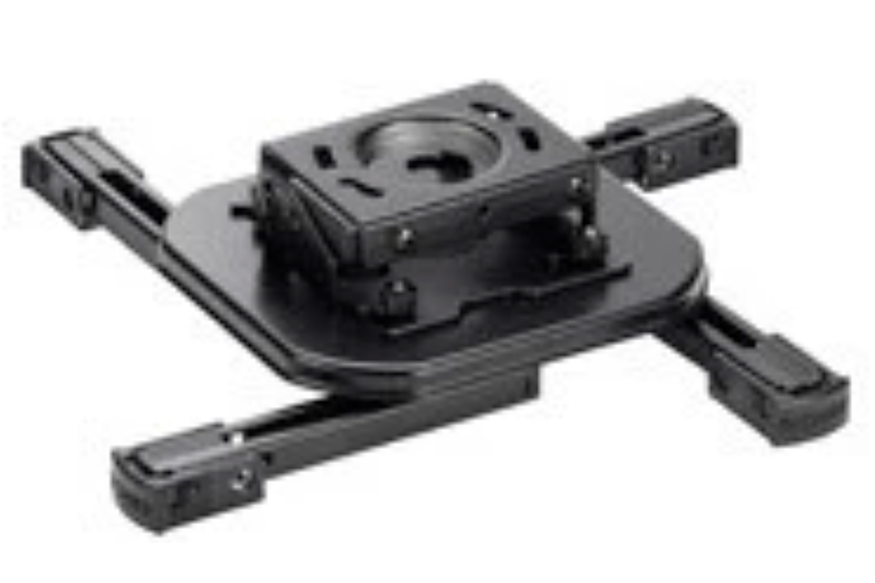 Highlights:• Compact ceiling mounted projector mount for smaller projectors• Supports projectors up to 11.3 kg • Precise adjustment with independent roll, pitch, and yaw • Quick installation and removal without losing alignment • High security with steel to steel locking points • Flexible mounting options for various installations Compact and professional mounting:This ceiling mount is designed for users who want a professional and space saving solution for mounting smaller projectors. The compact design is significantly smaller than traditional mounts while retaining all the features expected in a professional installation. It is ideal for meeting rooms, educational environments, and home cinema setups where a discreet and solid appearance is essential. The black finish blends seamlessly into most ceilings and AV installations, while the robust construction ensures stable and vibration free mounting. With support for projectors up to 11.3 kg, it provides a reliable solution suitable for a wide range of setups.Precise adjustment and easy access:The mount features independent adjustment of roll, pitch, and yaw, making it quick and easy to fine tune the projector position. This allows precise image alignment even after installation is complete. The quick connect and disconnect function provides convenient access to the lamp and filter on most projectors without affecting the stored adjustments. This saves time during service and maintenance and makes the mount especially suitable for professional environments where efficiency is critical.Flexible installation and high security:The mount offers excellent installation flexibility and can be mounted directly to the ceiling, used with threaded rods, or installed on an NPT column. The universal interface reduces installation time and simplifies the mounting process. At the same time, all connection points are secured with steel to steel locking mechanisms that effectively protect against theft. The combination of flexibility, security, and ease of use makes this ceiling mount an excellent choice for both commercial and private AV installations.Specifications:• Mounting type: Ceiling• Maximum load capacity: 11.3 kg • Rotation range: 0 to 360 degrees • Adjustment: Roll, pitch, and yaw • Colour: Black • Mounting options: Direct ceiling, threaded rods, 1.5" NPT column • Security: Steel to steel locking points
