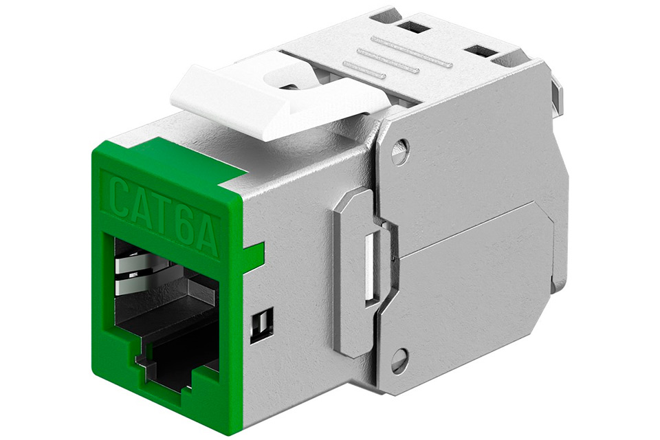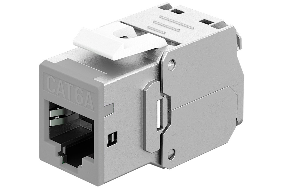 Highlights:• Slim Keystone module only 16.6 mm wide• Tool-free IDC mounting with crocodile type • Supports CAT 6A and 10 Gigabit Ethernet • STP shielding with robust zinc housing • Ready for PoE+ according to IEEE 802.3at • Suitable for both solid and stranded cables Space-Saving Keystone Module for Professional Network Installation:This Keystone Module RJ45 CAT 6A is designed for modern structured cabling where space efficiency, performance, and flexibility are essential. With a width of only 16.6 mm, the module is ideal for dense installations in patch panels and control cabinets where multiple modules must be mounted side by side without space limitations. The slim design improves installation efficiency and overview, especially in larger network setups. The module is part of a standardized Keystone system that allows fast installation in empty housings, network outlets, and patch panels. Tool-free snap-in mounting ensures quick and secure installation, keeping you one click ahead of cable management challenges.Reliable Signal Transmission and Broad Compatibility:The RJ45 CAT 6A Keystone module features STP shielding and a robust die-cast zinc housing that ensures stable and interference-free signal transmission, even in demanding environments. It supports 10 Gigabit Ethernet applications with bandwidths up to 500 MHz and is fully compatible with Power over Ethernet PoE+ according to IEEE 802.3at. The module is suitable for both solid and stranded network cables in AWG 22 to 24 and is designed for professional field termination. The rear RJ45 IDC connection is clearly marked according to TIA 568A/B, making correct installation simple and secure for installers.Specifications:• Connection: RJ45 female 8P8C• Connection 2: Tool-free IDC • Cable category: CAT 6A • Shielding: STP • Bandwidth: Up to 500 MHz • Support: 10 Gigabit Ethernet • PoE: PoE+ according to IEEE 802.3at • Cable type: Solid and stranded conductors • AWG: 22-24 • Construction: 180 degree cable outlet, crocodile type • Module width: 16.6 mm Product reviews and links