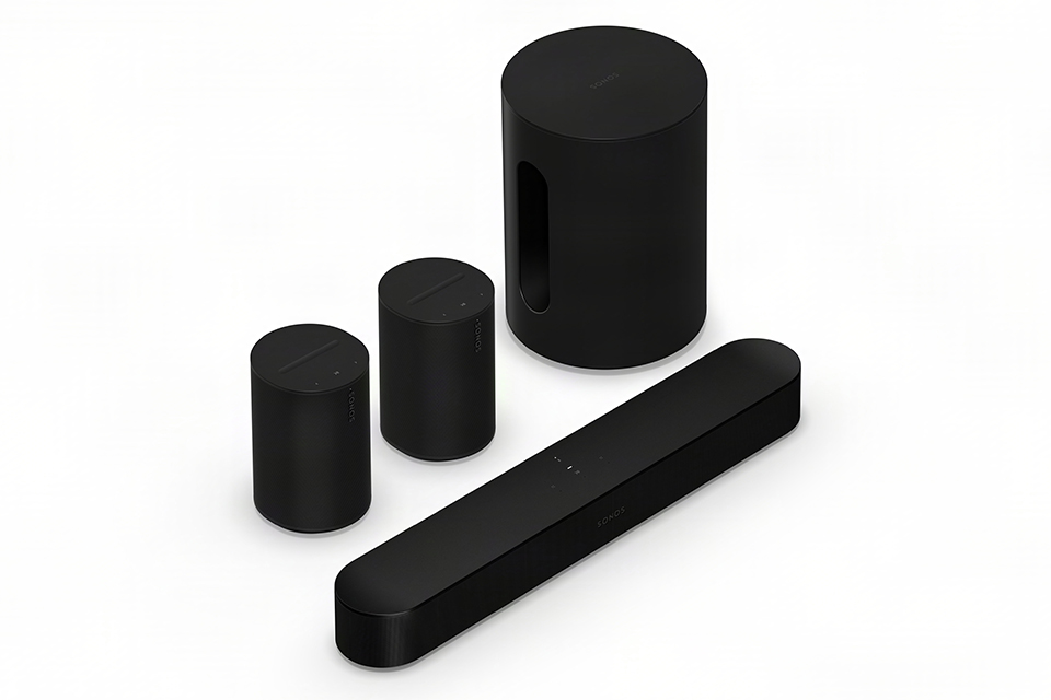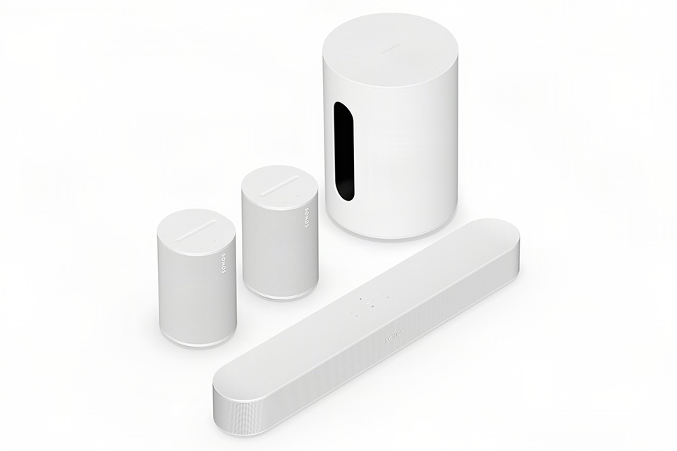 SONOS 5.1 system consisting of a SONOS Beam Gen2 soundbar, the powerful SONOS Sub Mini and a pair of Era 100 SL rear speakers.