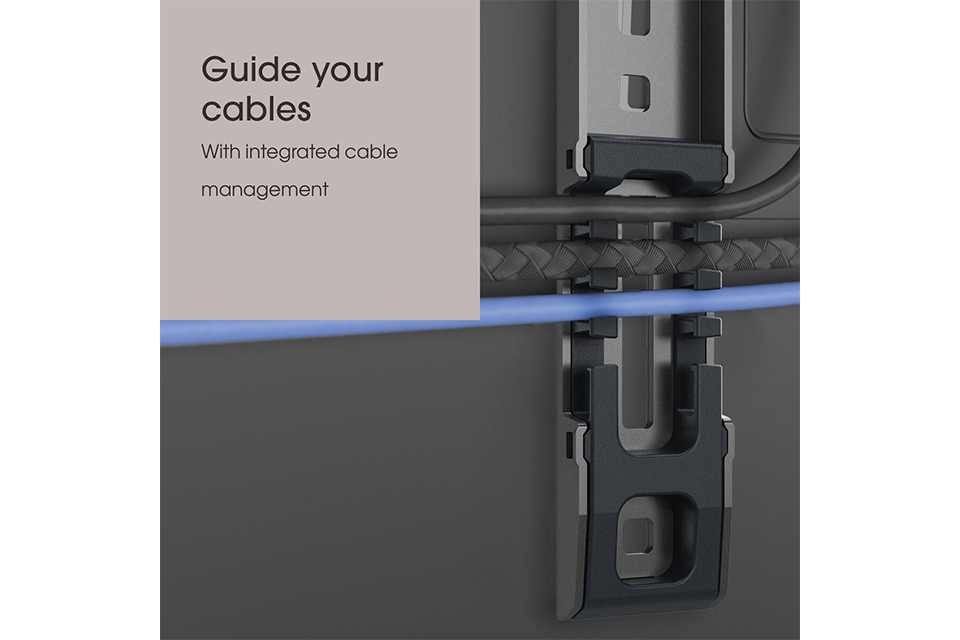 This mount supports a wide range of screen sizes from 32 to 77 inches and offers a maximum load capacity of 75 kg, making it suitable for both medium and large TVs. The universal VESA compatibility provides excellent flexibility during installation, allowing it to fit many different brands and models. With integrated cable management, you can easily organize cables for a clean and tidy installation. The mounting design is optimized for various wall types including wooden studs, where the double drilling pattern enhances stability and safety. It is a solution that combines functionality, durability and a refined aesthetic in one package.