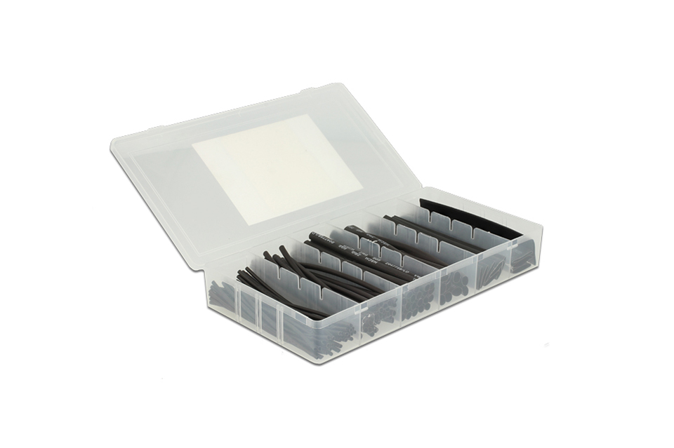 Highlights:• 100-piece heat shrink tubing assortment in practical storage box• Ideal for insulating, bundling and protecting cables • 6 different diameters for versatile cable applications • Shrink ratio 2:1 for secure and tight fit • Suitable for hobby, workshop and professional installations • 100 mm length on all pieces for flexible use Practical heat shrink tubing assortment for cables and wires:This heat shrink tubing assortment offers a simple and efficient solution for bundling, protecting and insulating cables and wires. The set includes 100 black heat shrink tubes, neatly organized in a practical storage box, making it easy to find the right size when you need it. This makes it ideal for everything from small repairs and DIY projects to more demanding installation tasks. The black finish ensures a clean and discreet result that fits seamlessly with most cable types and setups.Flexible selection with multiple sizes:The wide range of diameters makes this set highly versatile, whether you are working with thin wires or thicker cables. Each shrink tube has a length of approximately 100 mm, providing excellent flexibility for both insulation and fastening. With a shrink ratio of 2:1, you achieve a tight and secure fit around cable joints, connectors and exposed areas. The shrink temperature range of 100 °C to 125 °C ensures easy handling with standard heat sources, giving you a reliable and durable solution for many different applications.Specifications:• Product type: Heat shrink tubing assortment• Quantity: 100 pcs • Length per piece: Approx. 100 mm • Color: Black • Shrink ratio: 2:1 • Shrink temperature: 100 °C to 125 °C • Diameter distribution: 30 x 1.5 mm • Diameter distribution: 30 x 2.5 mm • Diameter distribution: 20 x 4.0 mm • Diameter distribution: 10 x 6.0 mm • Diameter distribution: 6 x 10.0 mm • Diameter distribution: 4 x 13.0 mm • Box dimensions: 33 x 124 x 210 mm