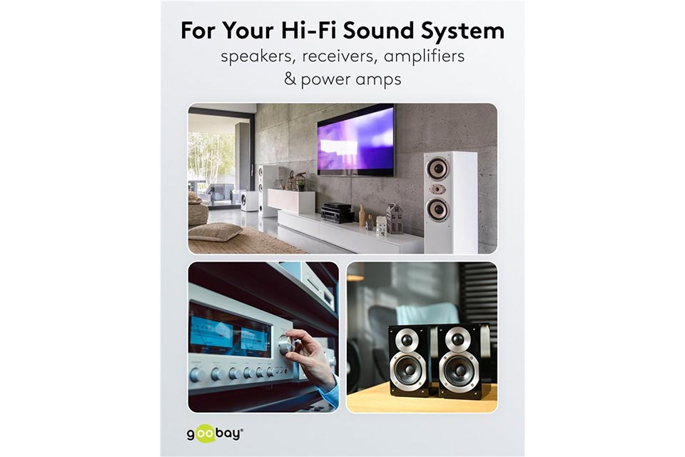 For the more discerning customers, a Goobay Plus cable series is also offered, which is in extra nice quality with high wear resistance, gold plated connectors and an elegant fabric-covered finish. Of course still at an extremely attractive price in relation to the quality.